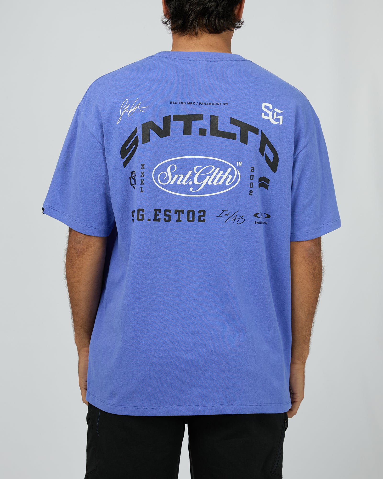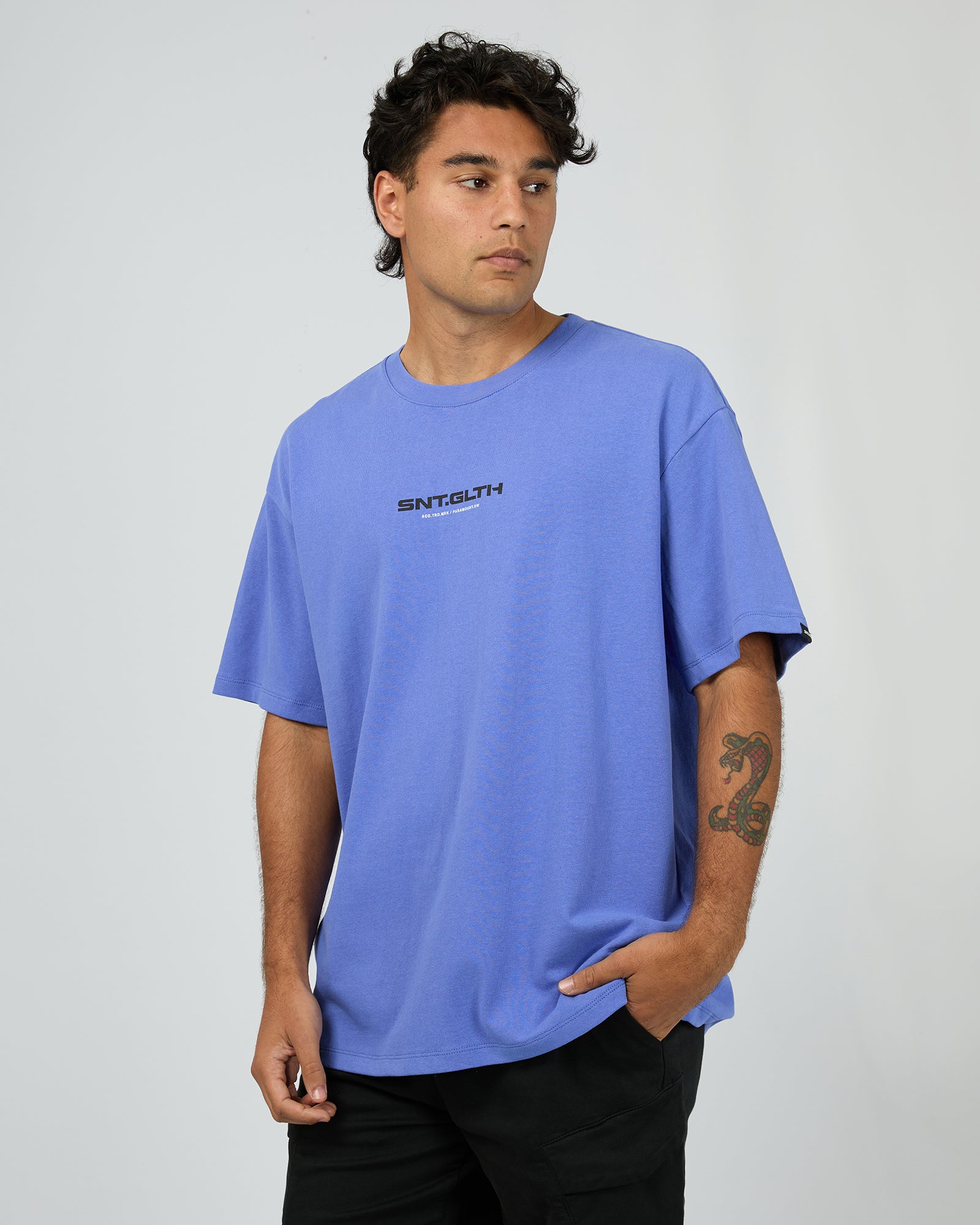 The Bodega Tee Blue offers a relaxed fit with comfortable short sleeves and a classic crew neckline. Featuring unique graphic details on both the front and back, this tee combines style with ease, making it a versatile addition to your casual wardrobe. Perfect for everyday wear.