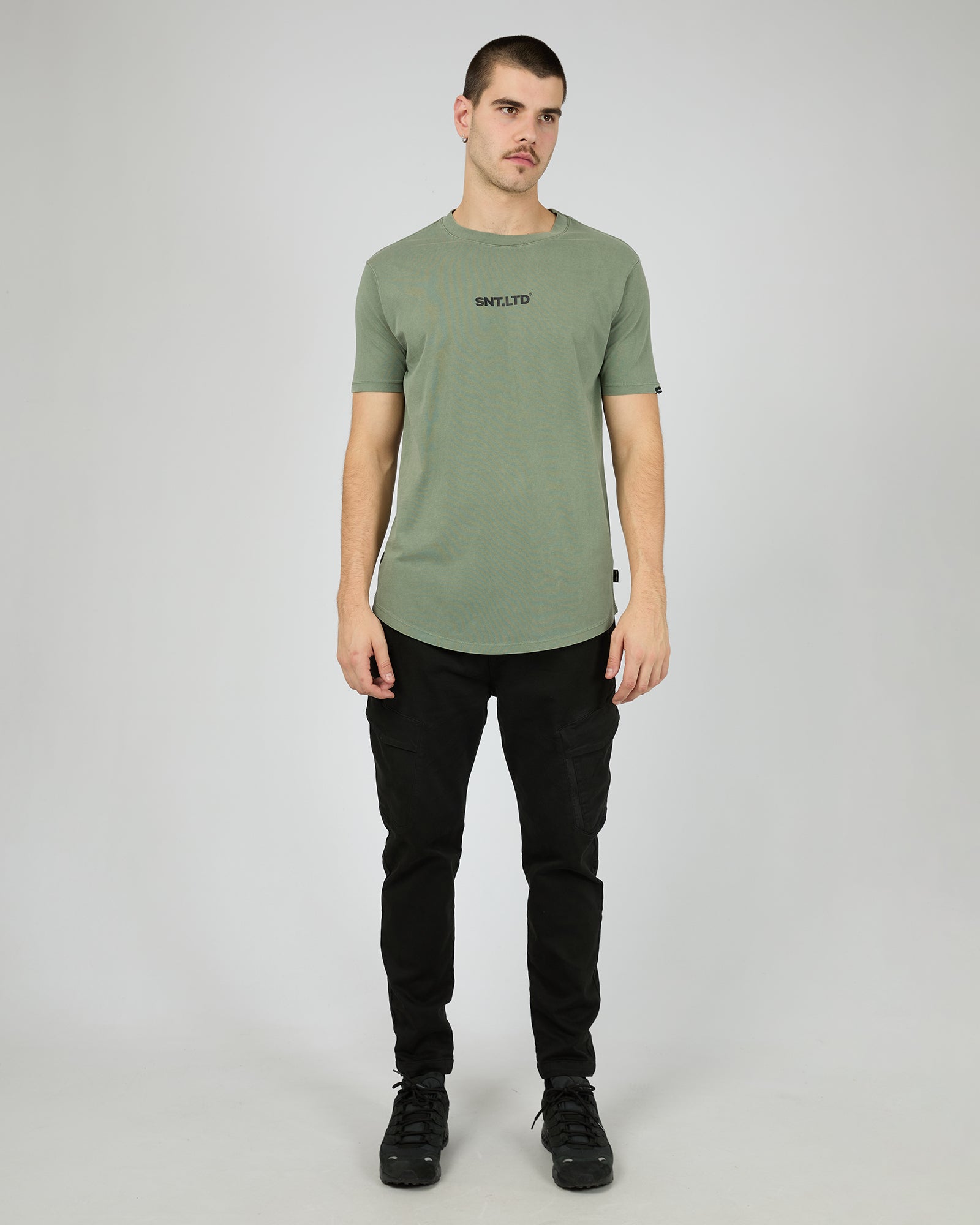 The Unlimited Tee in green offers a slim fit with a stylish curved hemline and a classic crew neckline. Featuring graphic details on both the front and back, this tee combines a flattering silhouette with eye-catching design to support your confident, everyday style.