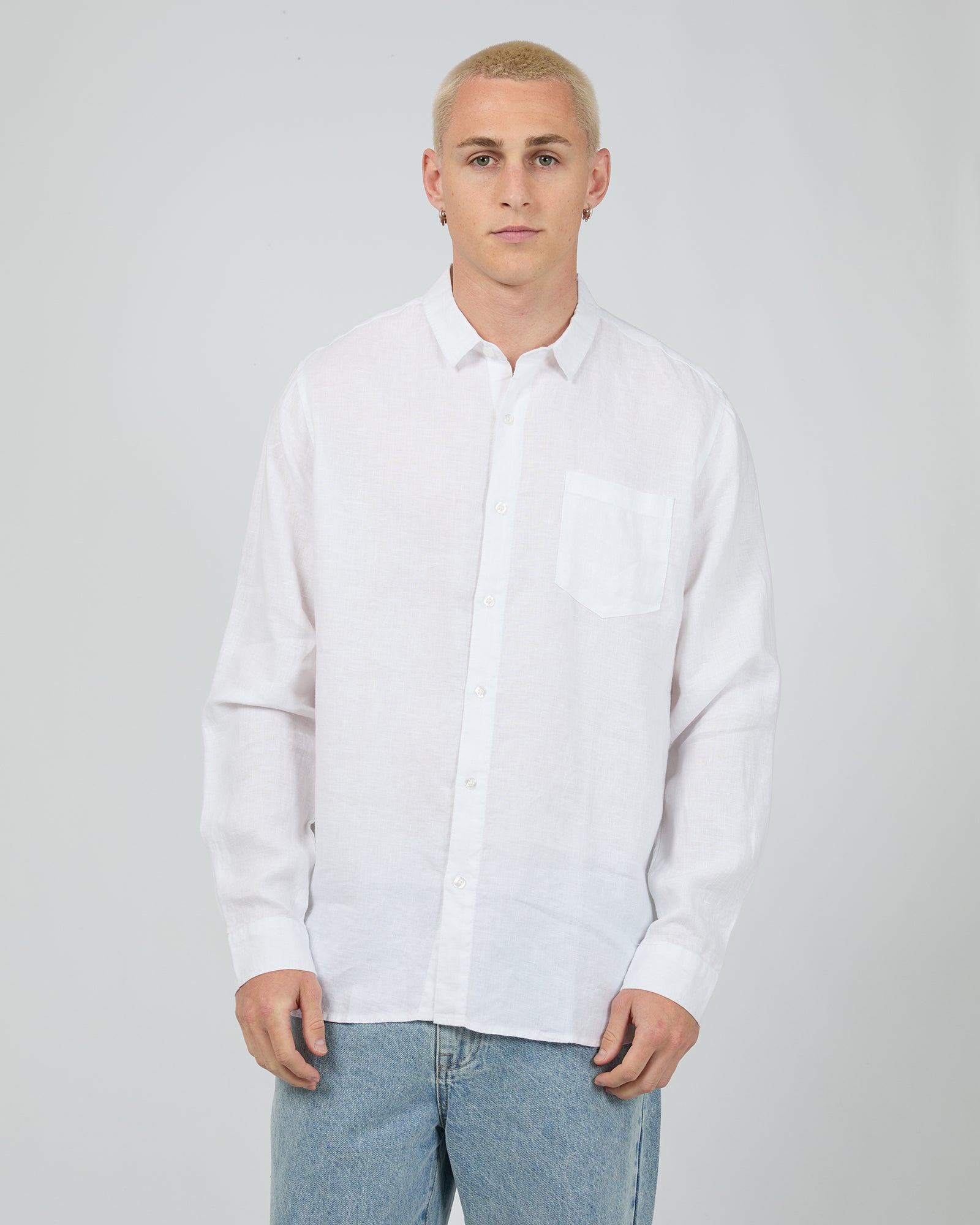 Experience comfort and style with the Linen Long Sleeve Shirt. This relaxed-fit, long-sleeve shirt features a classic collared neckline and a convenient button-down front for easy wear. A practical front pocket adds subtle detail without compromising its clean look. Perfect for everyday wear, its natural linen fabric keeps you cool and comfortable throughout the day.