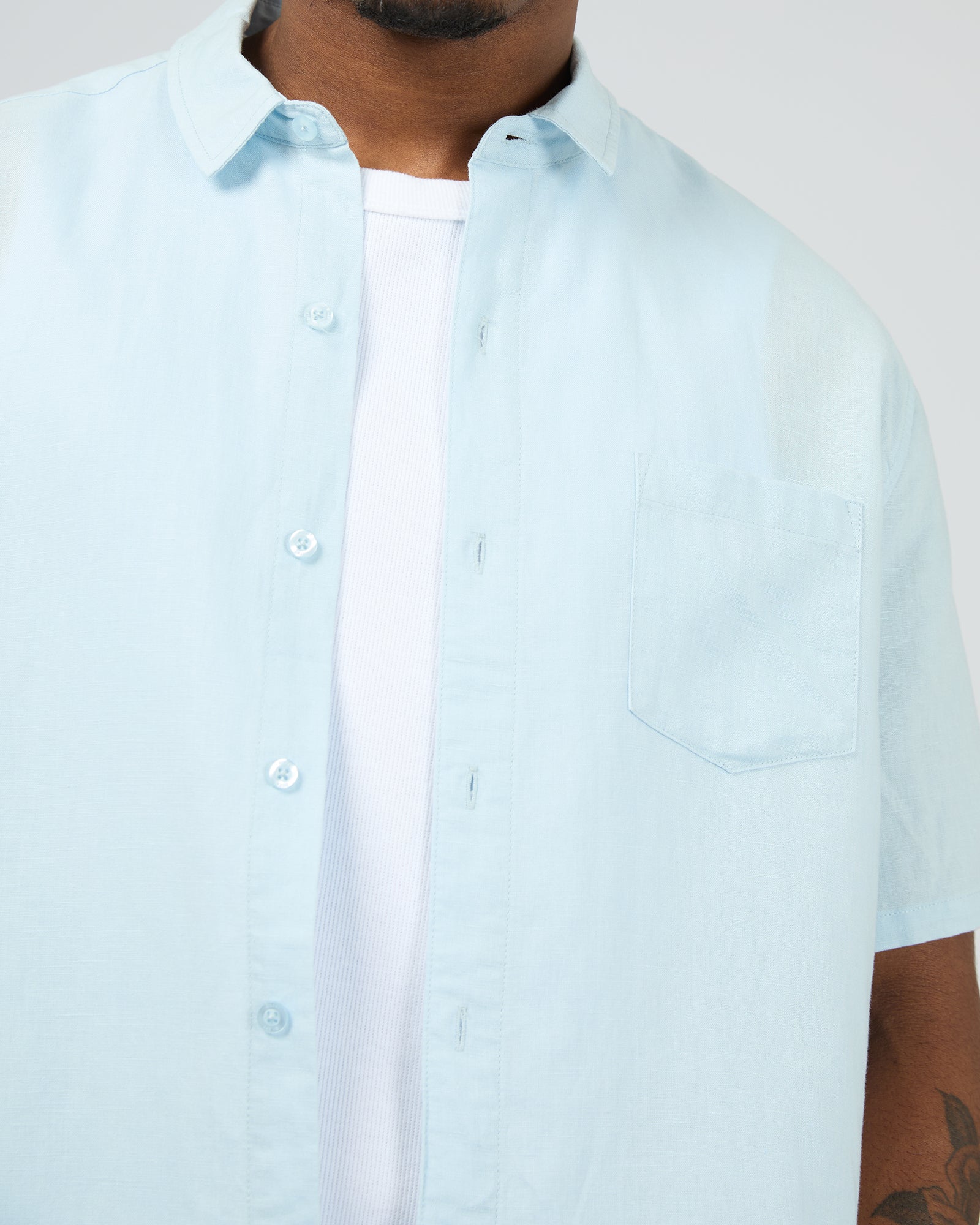 Linen Short Sleeve Shirt II Pale Blue