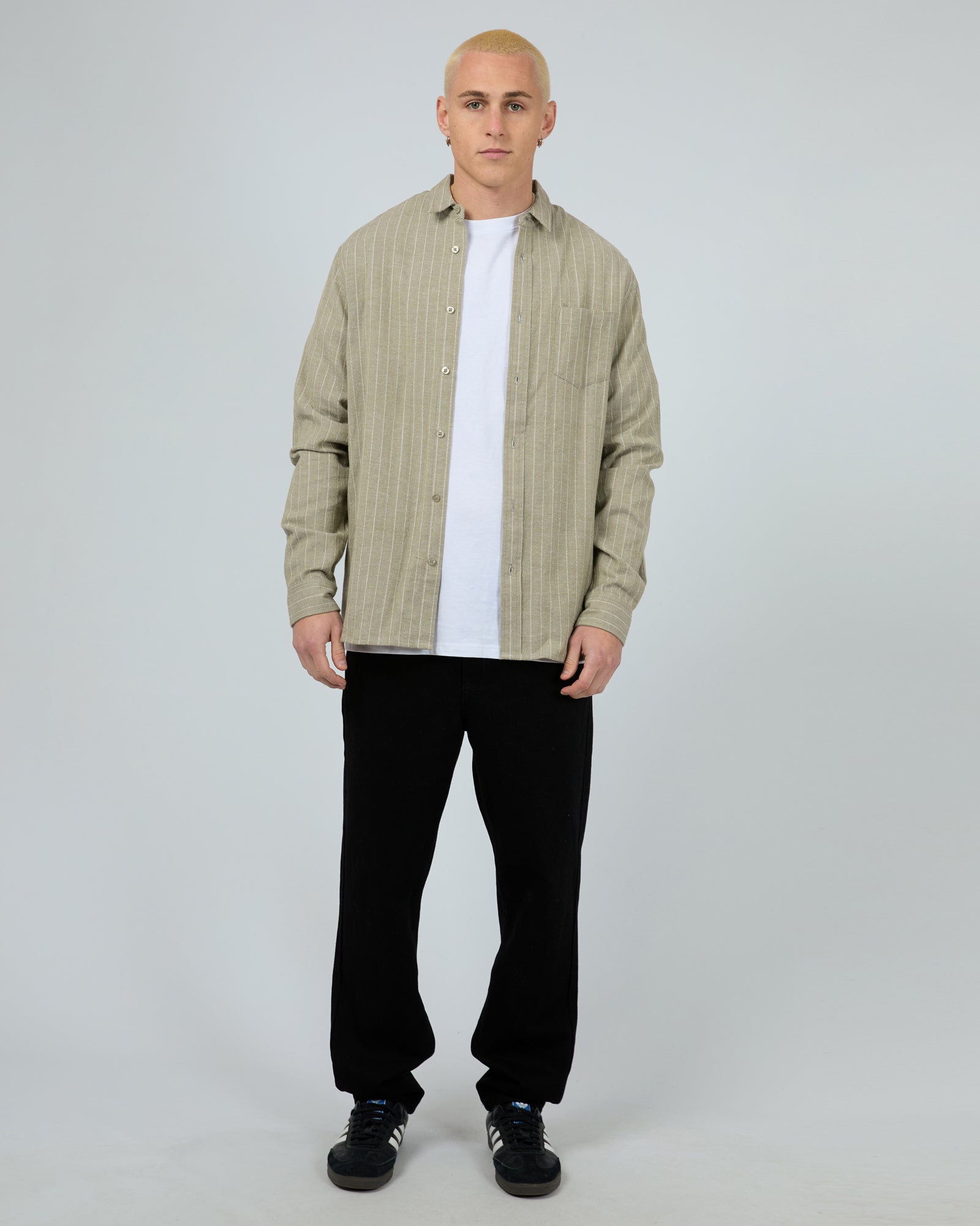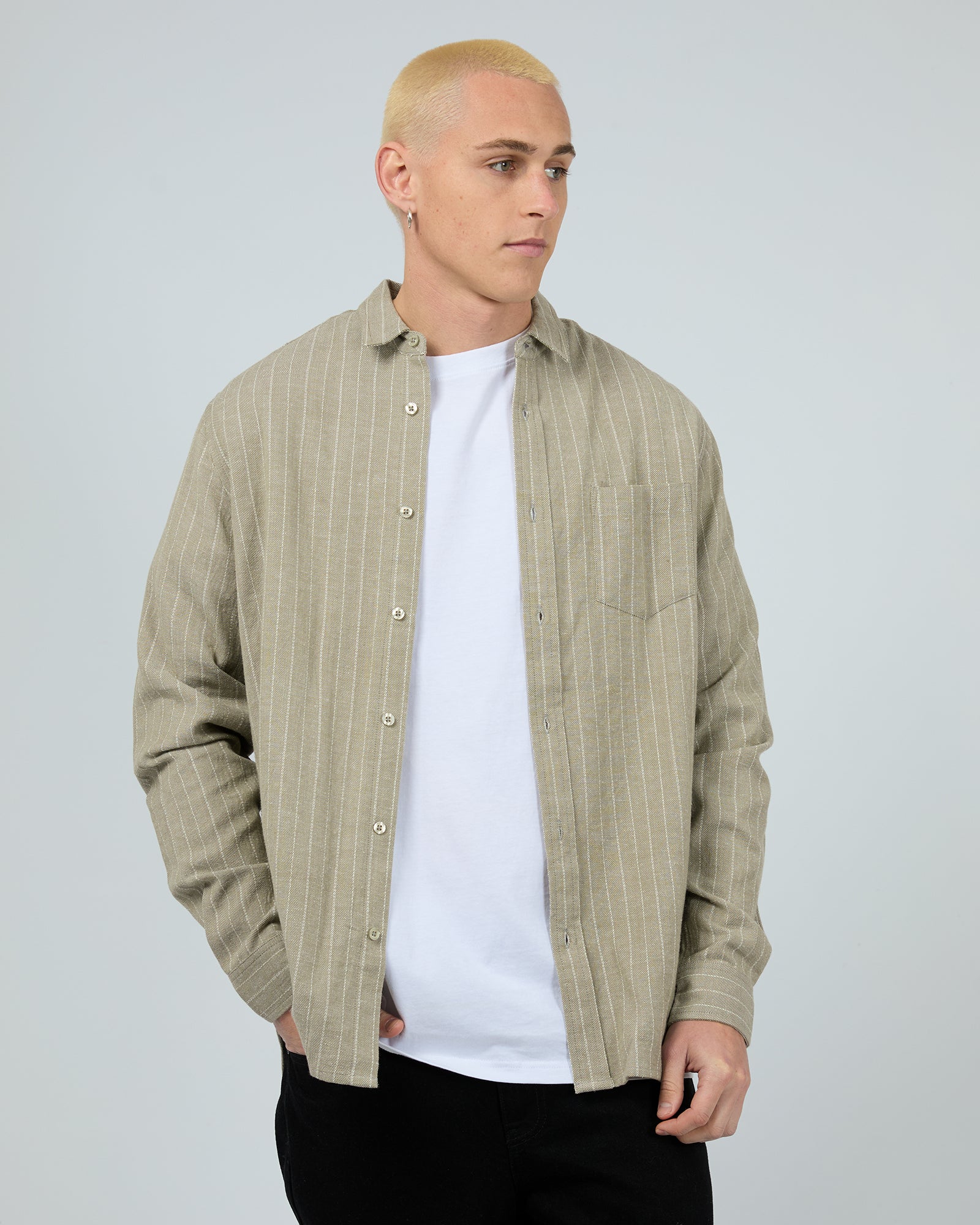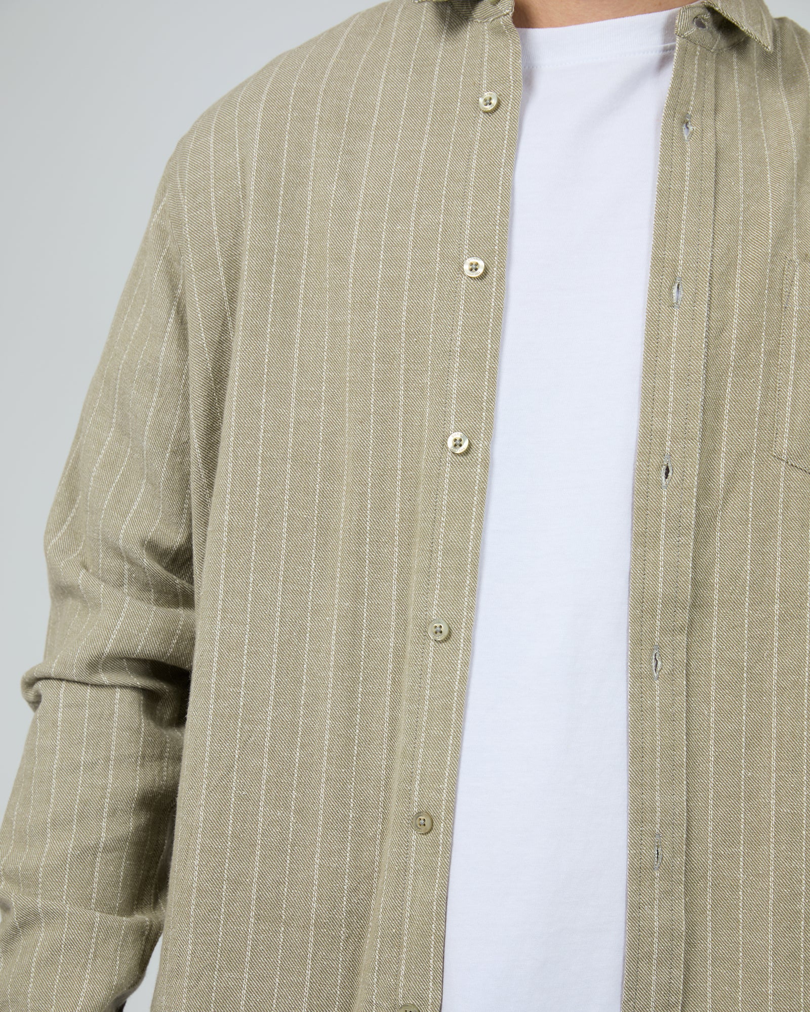 The Walker Shirt Khaki is expertly crafted with a blend of cotton and linen, providing a comfortable and durable option for everyday wear. Perfect for any occasion, this shirt is a versatile addition to any wardrobe.